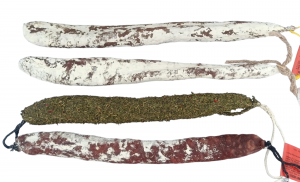 Fuets de paprika, ajo, finas hierbas, trufa, queso de cabra, nueces, barbacoa, pimienta negra, ibérico.